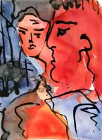 Portraits - watercolor, wax pencil, coal, 07/2018